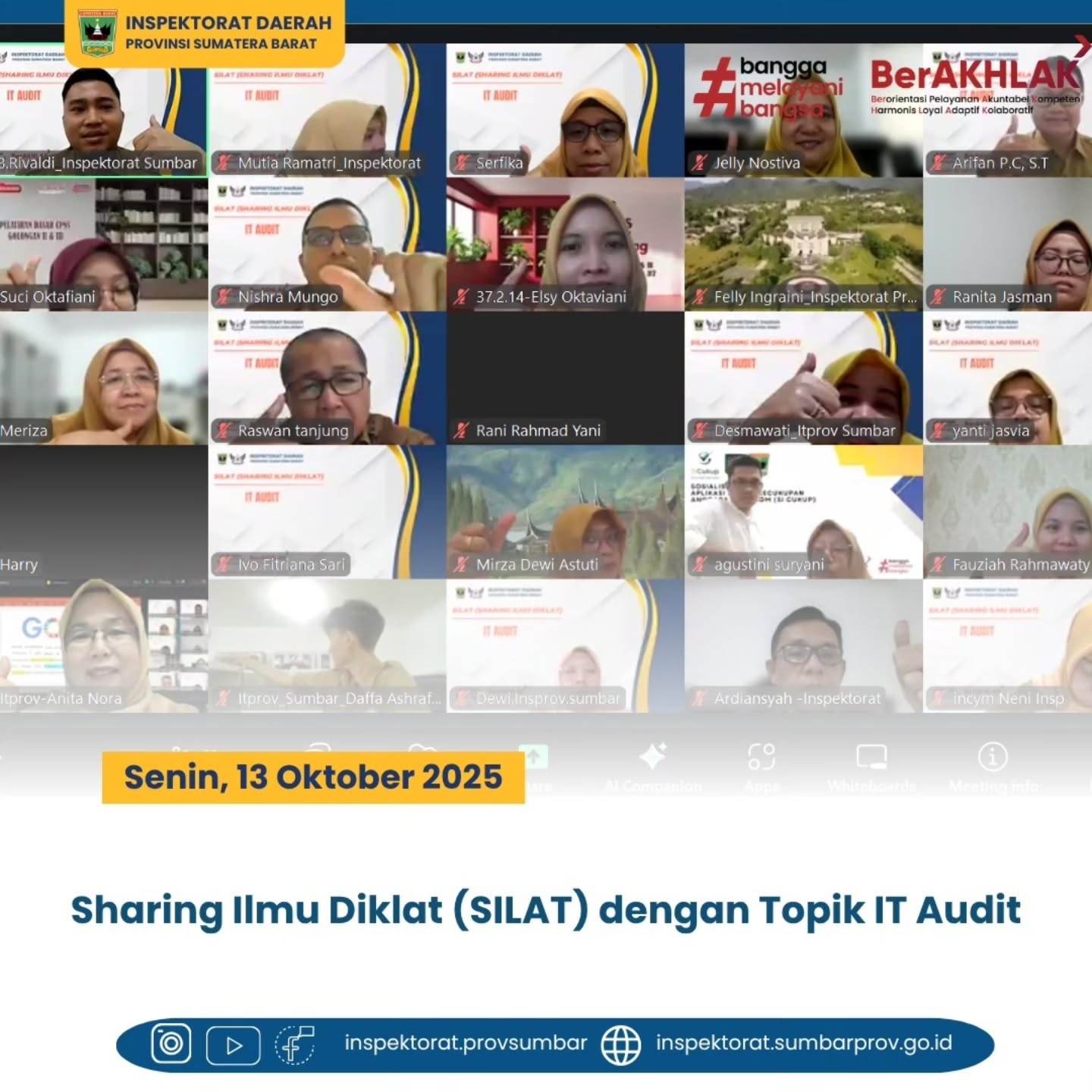 Padang, 13 Oktober 2025 – Dalam rangka meningkatkan kompetensi SDM dan memperkuat Kapabilitas APIP, Inspektorat Daerah Provinsi Sumatera Barat menyelenggarakan kegiatan Sharing Ilmu Diklat (SILAT) dengan topik IT Audit.